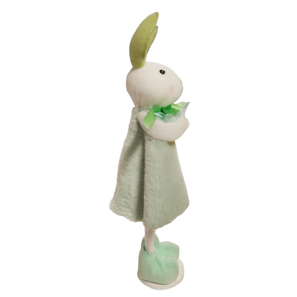 Ez a 25 cm magas, türkiz-zöld Húsvéti Nyuszi dekoráció vidám és barátságos hangulatot csempész majd a húsvéti dekorációid közé. Puha tapintása, a gyönyörű zöld selyem masni a nyakán, és a kezében lévő virág teszi igazán szerethetővé ezt a Húsvéti nyuszi figurát. Legyen szó koszorúkról, asztaldíszekről vagy egyéb dekorációs ötletekről, ez a nyuszi tökéletesen illeszthető bármilyen kreatív húsvéti dekorhoz. Tedd az asztalra, a polcra, vagy használd a koszorúk és az asztali díszek központi elemeként, egy biztos, bárhova is helyezed biztosan vidám, Húsvéti hangulatot varázsolsz majd vele.