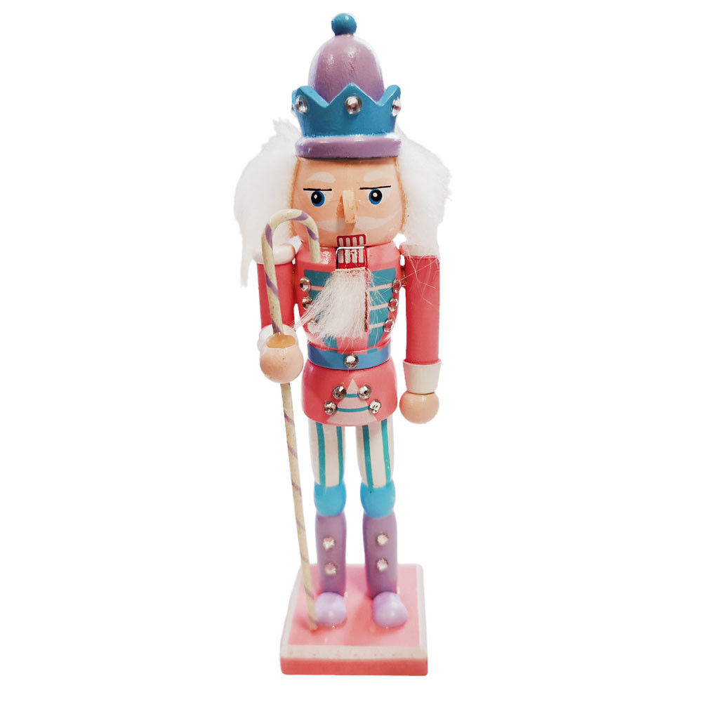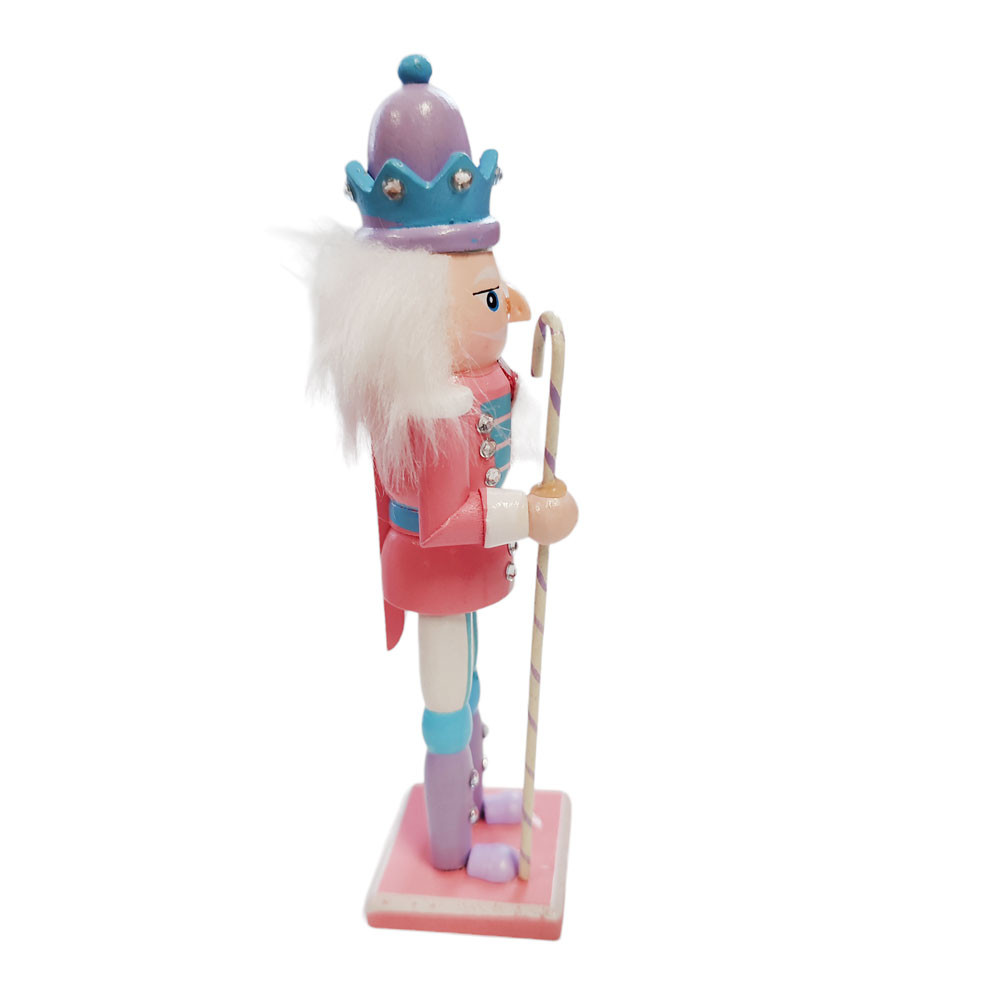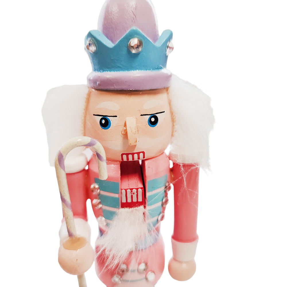 Karácsonyi Diótörő Figura 18 cm-es méretben pasztel rózsaszín színvilággal és nyalóka pálcával legfőbb jellemzői: