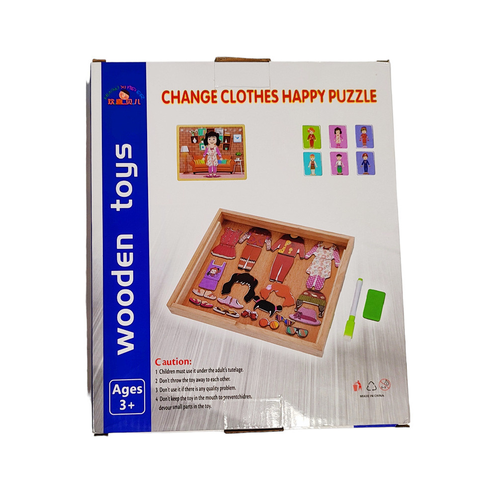 Egy kiváló minőségű fából készült mágneses öltöztető játék gyerekeknek.