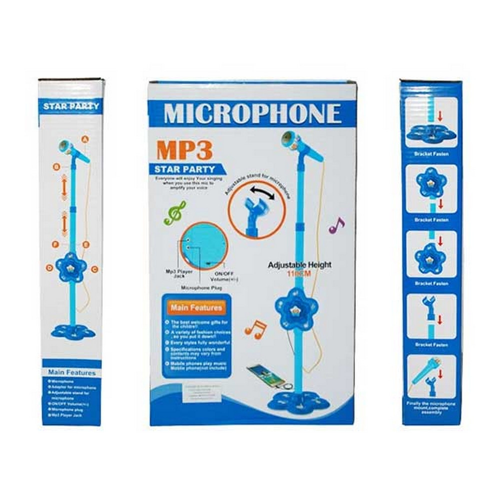 Az MP3 lejátszós karaoke mikrofon különlegessége, hogy nem csak szimplán énekelhetnek vele a gyerekek, hanem a hozzátartozó jack kábel segítségével bármilyen okos eszközt rá csatlakoztathatunk az állványra (Pl. Telefon, tablet) melyre a kedvenc számát bekapcsolva aláfestő zeneként funkcionálhat, így komplett és valódi szórakozást nyújt a kis rocksztároknak és közönségüknek. Az állítható magasságú állvánnyal mérete személyre szabható.